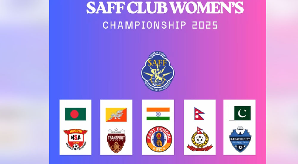 काठमाडौं । यही मंसिर १९ गतेदेखि काठमाडौंमा साफ महिला क्लब च्याम्पियनसिप आयोजना हुने भएको छ । अखिल नेपाल फुटबल संघ एन्फाले सोमबार ललितपुरमा पत्रकार सम्मेलन गर्दै मंसिर १९ देखि पुस ५ गतेसम्म दशरथ रंगशालामा साफ महिला क्लब च्याम्पियनसिप आयोजना हुने जनाएको हो । प्रतियोगितामा साफसँग आबद्ध पाँच देशका महिला लिग बिजेता क्लबहरूको सहभागीता रहने एन्फाका प्रमुख कार्यकारी अधिकृत इन्द्रमान तुलाधरले जानकारी दिए । सिंगल राउन्ड रोविनका आधारमा खेल खेलाइने र शीर्ष दुई टोलीबीच फाइनल खेल हुने उनले बताए ।